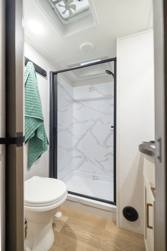 • Large Shower w/ Retractable Shower Door & Skylight